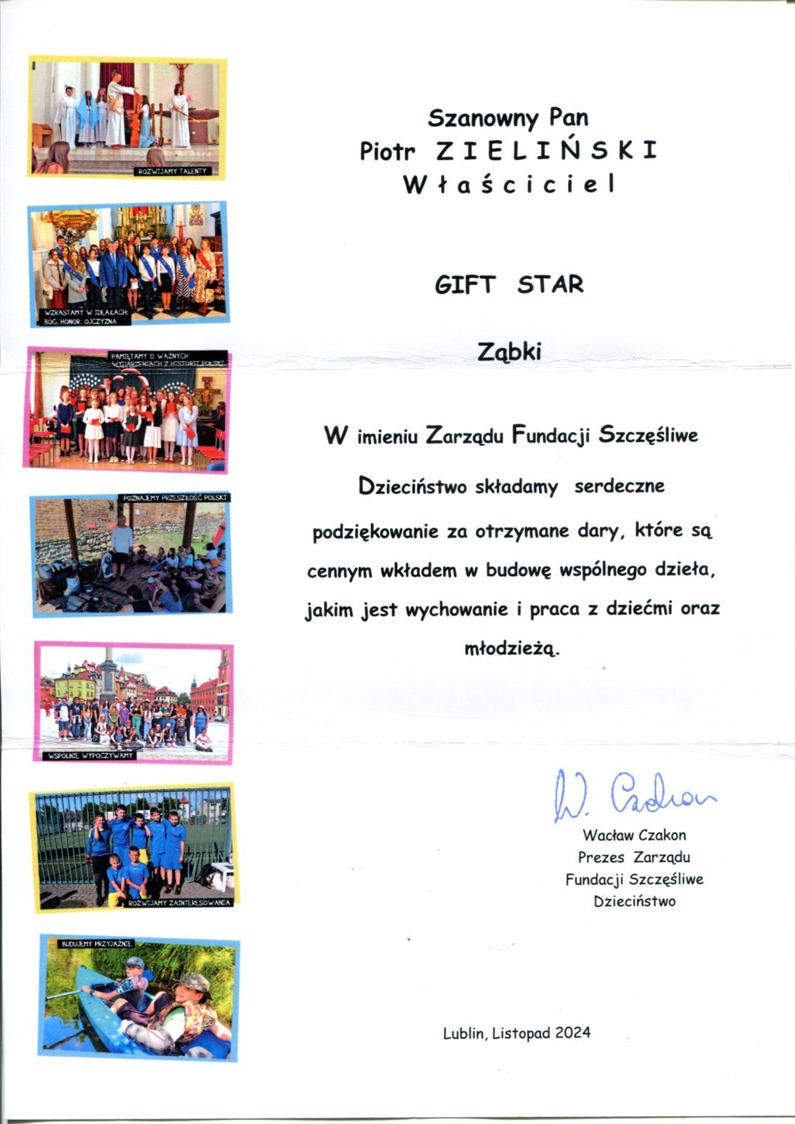 GIFT STAR provided support in kind for the beneficiaries of the Happy Childhood Foundation.